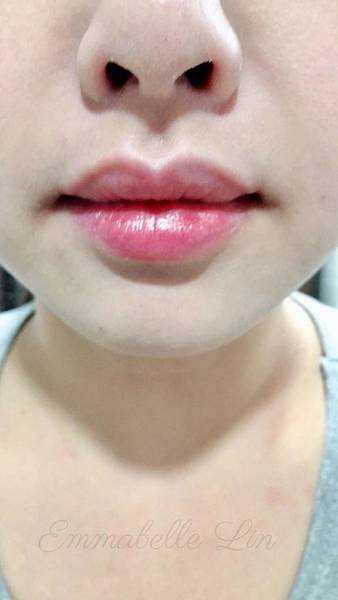 不知道大家能否看得清楚,我沒有敷的很厚唷,是唇膜本身就很飽水,敷好就這樣去睡覺囉~